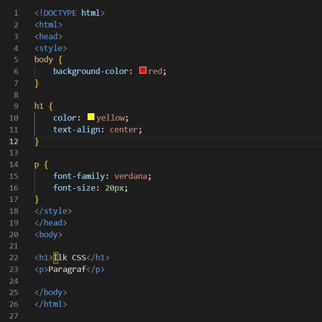 Burada html içerisindeki h1 etiketinin fontunun değiştirilmesini ve yazının ortalanmasını sağladık. p etiketinin de font tipini ve yazı boyutunu değiştirdik. body ye verilen özellik ise sayfanın arka plan rengini değiştirmemizi sağladı.