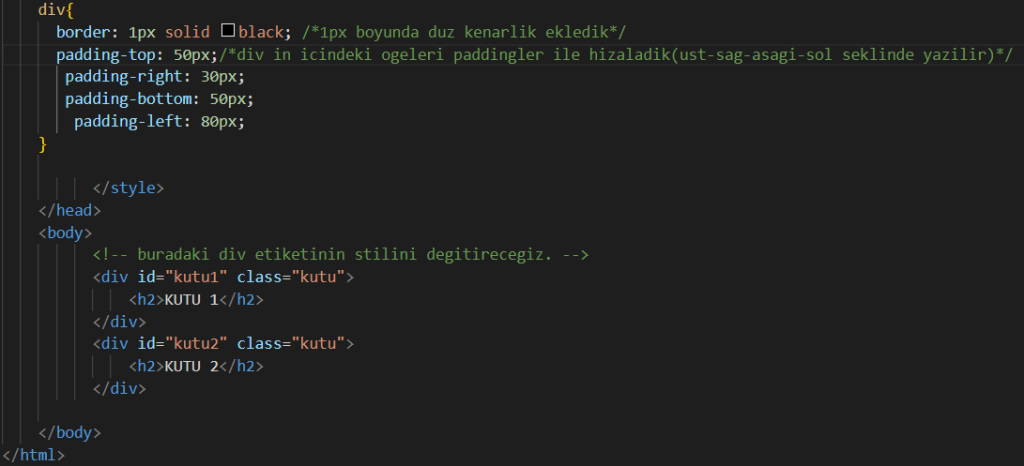 3- Burada border ve paddinglerin kullanımına bakalım.