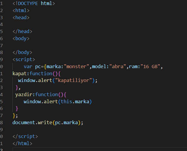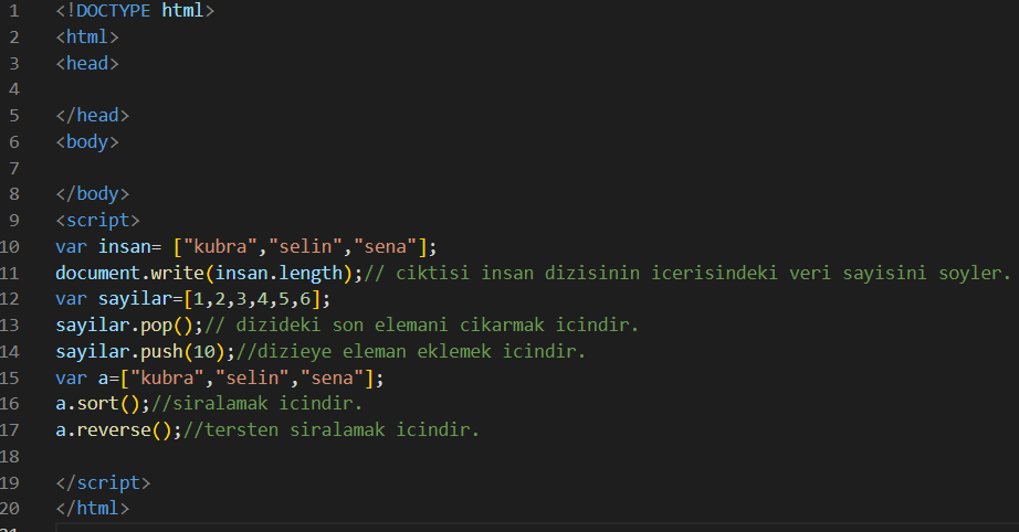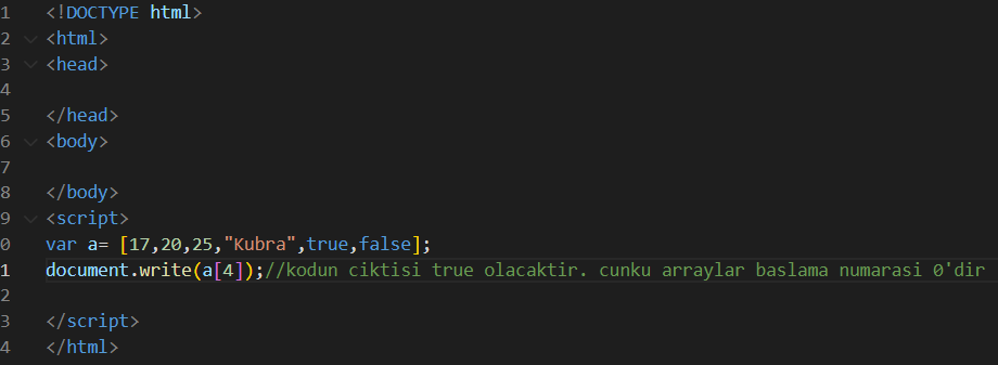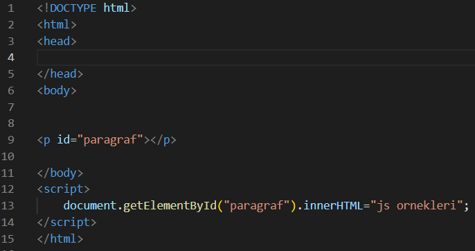 Kod çalıştırıldığında ekranda “js ornekleri” yazmaktadır.